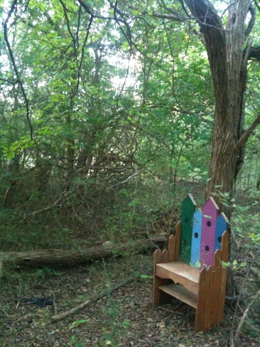 One of the last things Dad made for me is what I call a garden bench. It’s a simple thing and not really made for an adult to sit on. I remember him telling me it would be good for potted plants or garden tools and such. He had someone paint the backrest to look like bird houses. It was really cute and we enjoyed it on the back porch of our previous house for years.